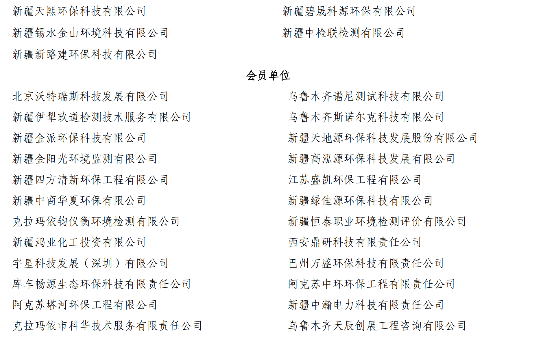 附件:新疆维吾尔自治区生态环境保护产业协会会员名单