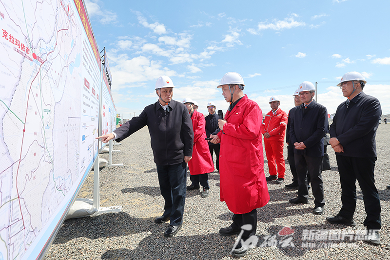 4月20日,自治区党委书记马兴瑞在克拉玛依风城油田高温光热利用先导试验项目建设现场,了解光热制蒸汽驱动稠油开采试验进展和应用前景等情况。石榴云/新疆日报记者 崔志坚摄