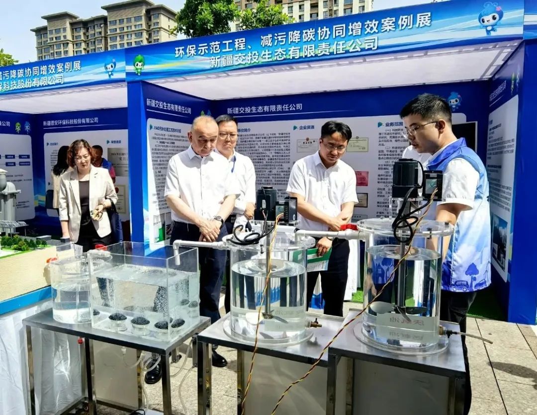 当日,全疆各地也同步举行了丰富多彩的分会场活动。我会作为此次自治区六五环境日主场活动的承办单位之一,组织了生态环境设备展及环保示范工程展。生态环境设备展邀请了新疆环保循环产业集团有限责任公司、北京雪迪龙科技股份有限公司、新疆中汇新能环保科技有限公司、南京泷宣凌盛科技有限公司、新大禹环境科技(广东)集团股份有限公司、行星轮科技(武汉)有限公司、三达膜科技(厦门)有限公司、力合科技(湖南)股份有限公司等十二家企业参加了生态环境设备展。相关参会领导及代表参观了展区,各参会企业代表积极展示并详细介绍了企业的先进技术及模型设备。本次设备展覆盖了废水、固体废物、大气、土壤等多种要素污染防治领域,为环保企业及相关技术搭建了高层次的展示和交流平台,有力推动了环保技术的推广与应用。