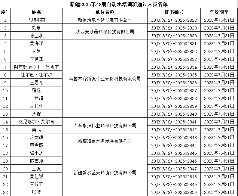 名单公布 | 2025年第48期污废水连续自动监控系统运行人员培训班考核通过名单公布