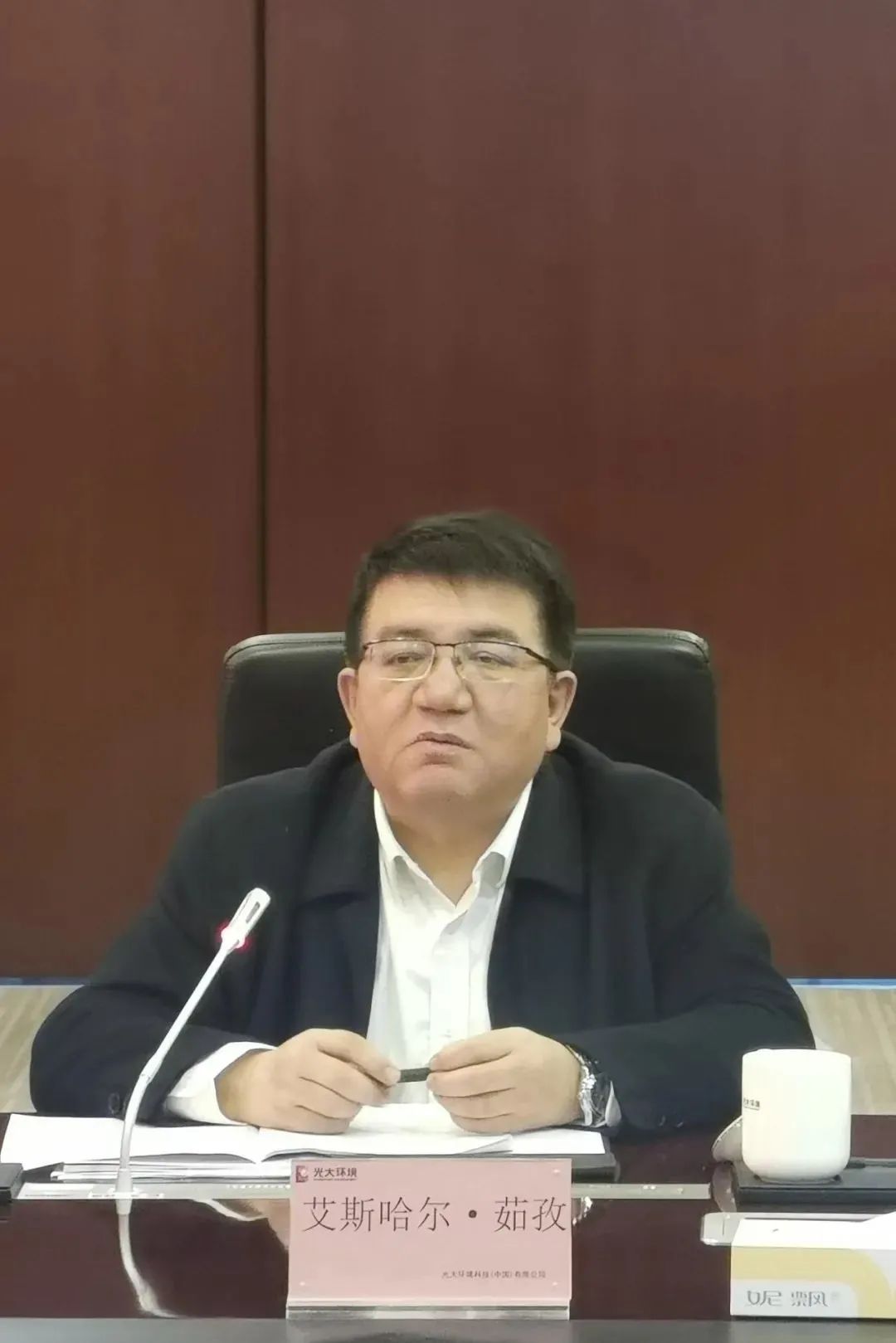 图|会长单位新疆新能源集团党委委员、副总经理艾斯哈尔·茹孜(左) 光大环境总裁特别助理、绿色科创板块总裁赵彬(左)